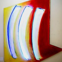 This work evolved and developed into abstract colour compositions and transparency overlay collages in two and three dimensions. I titled this Luminaria, along with paintings, photography, neon light constructs and more recently digitized imagery.